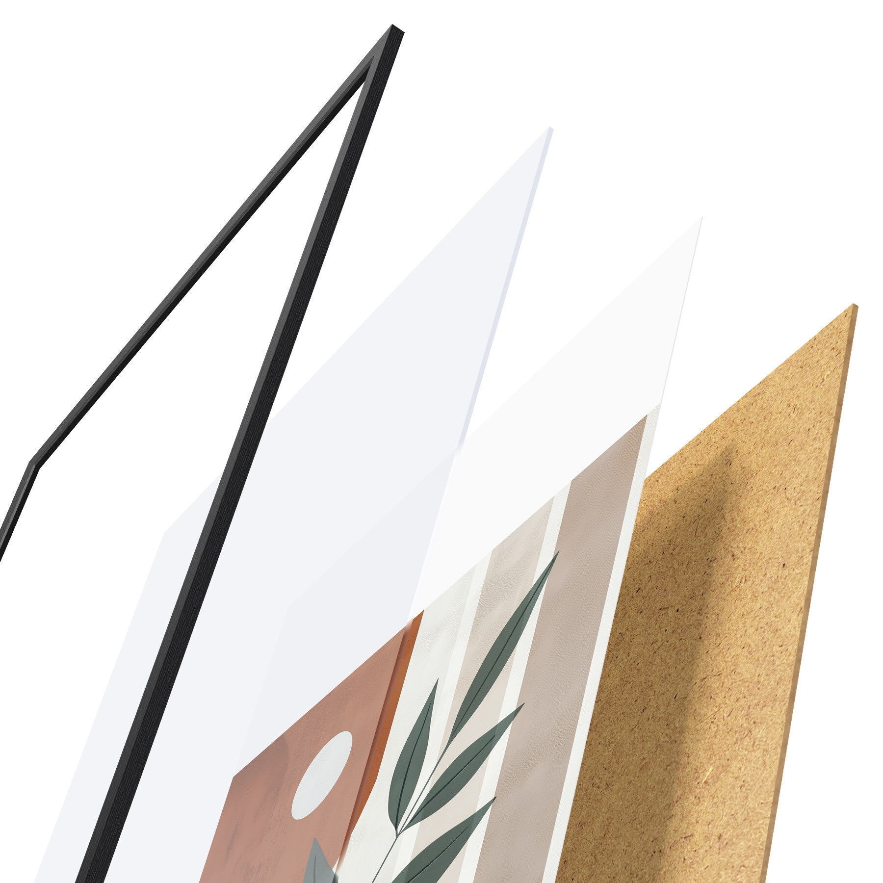 L’affiche encadrée est composée d’un cadre, d’un plexiglas, d’une image imprimée et d’un support en aggloméré. Elle est prête à être accrochée au mur grâce aux fixations situées à l’arrière.