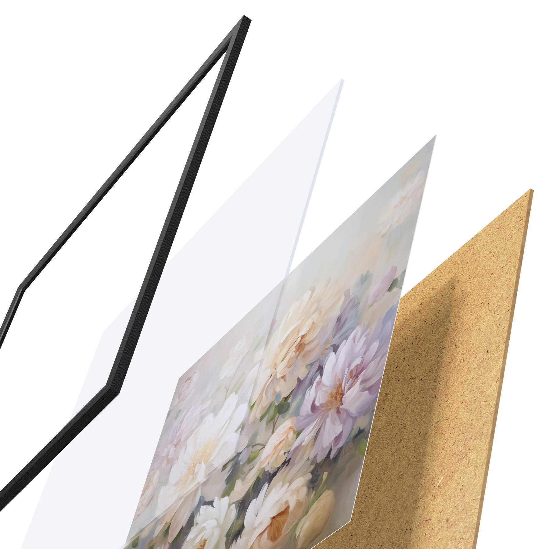 L’affiche encadrée est composée d’un cadre, d’un plexiglas, d’une image imprimée et d’un support en aggloméré. Elle est prête à être accrochée au mur grâce aux fixations situées à l’arrière.