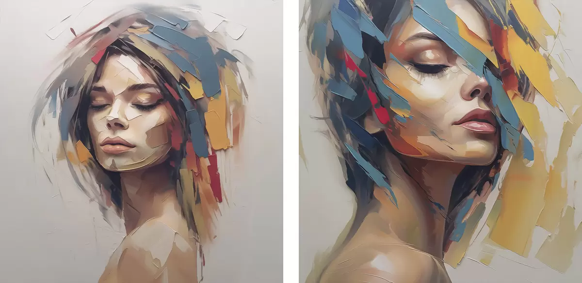 Trois types de matériaux peuvent être commandés : Economic Canvas - matériau dense et durable pour l'impression numérique, identique à la toile de peintre, surface imperméable, reproduction réaliste des détails, matériau à grain moyen. Premium Canvas - la texture ressemble à celle d'une toile de peintre (petits fils entrelacés). Reproduction douce et détaillée de l'image sur une surface mate. Eco-Premium - tissu 100 % coton de haute qualité. Grâce aux fibres naturelles de coton, le matériau est durable et résistant à l'usure. Excellente reproduction des couleurs et des détails.