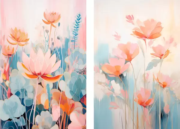 Poster Harmonie aquarellée de fleurs dans une palette rose et bleue Nr d01084