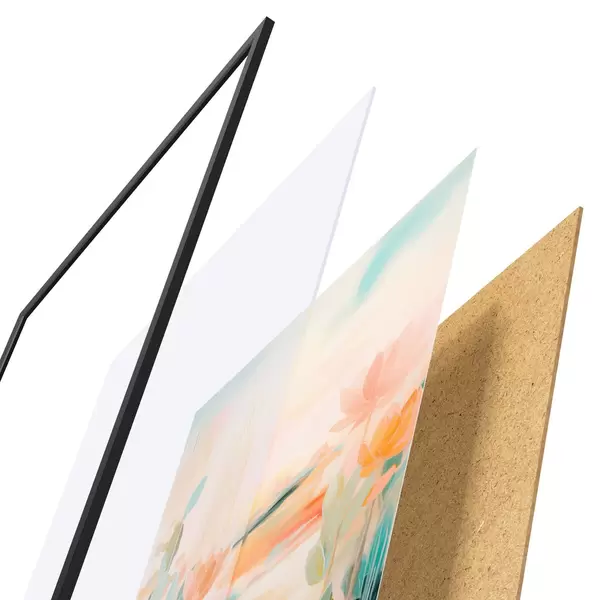 L’affiche encadrée est composée d’un cadre, d’un plexiglas, d’une image imprimée et d’un support en aggloméré. Elle est prête à être accrochée au mur grâce aux fixations situées à l’arrière.