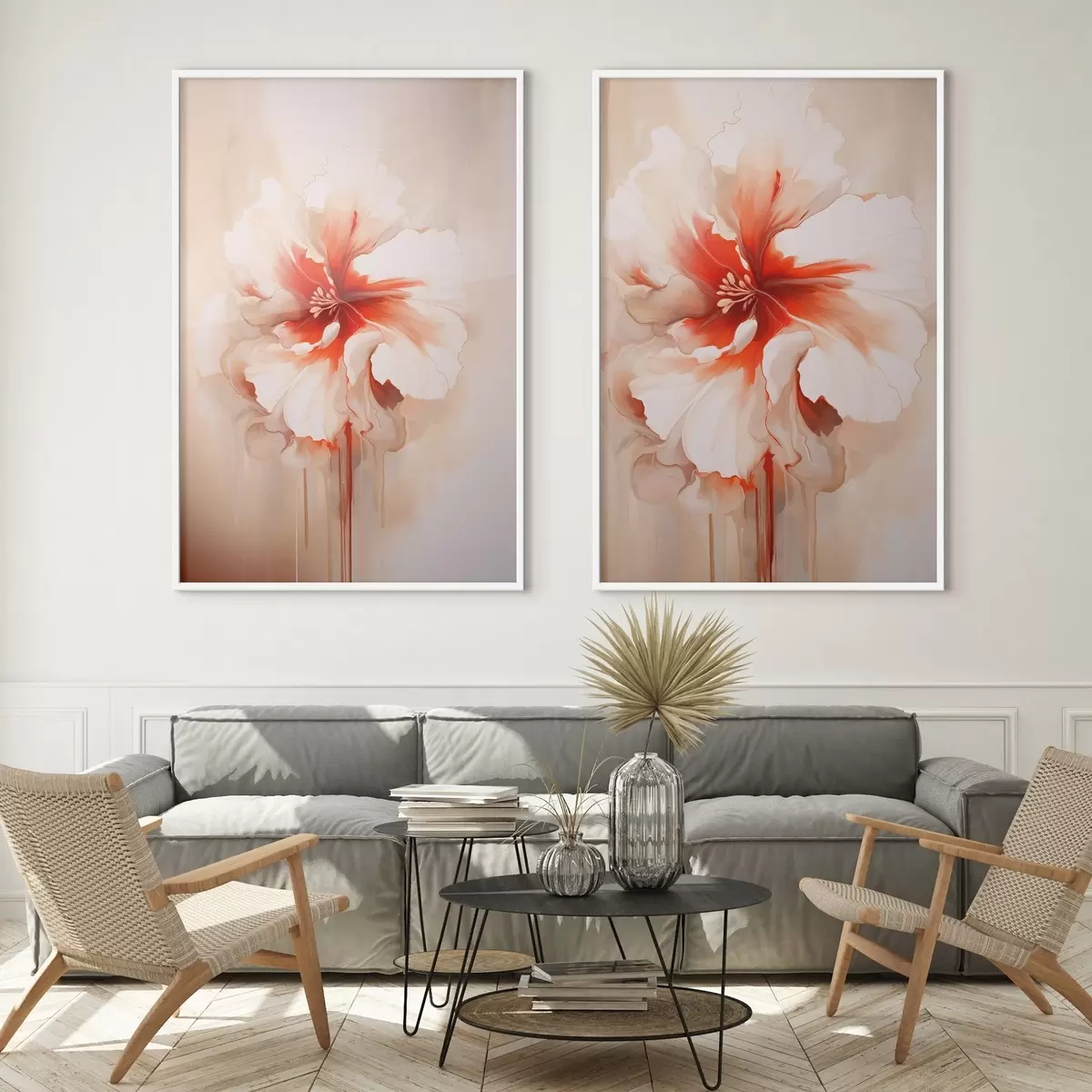 Poster Pétales de corail blanc sur fond abstrait, composition apaisante d01089