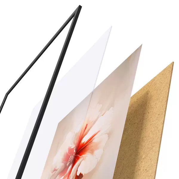 L’affiche encadrée est composée d’un cadre, d’un plexiglas, d’une image imprimée et d’un support en aggloméré. Elle est prête à être accrochée au mur grâce aux fixations situées à l’arrière.