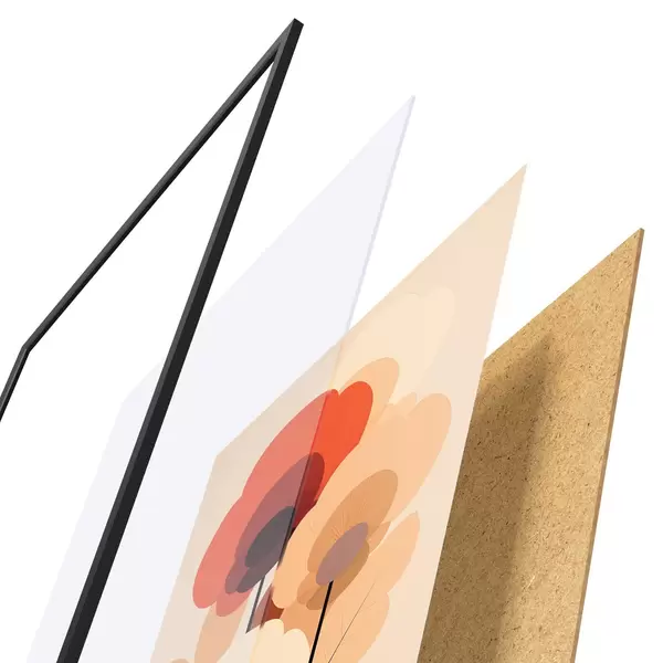 L’affiche encadrée est composée d’un cadre, d’un plexiglas, d’une image imprimée et d’un support en aggloméré. Elle est prête à être accrochée au mur grâce aux fixations situées à l’arrière.