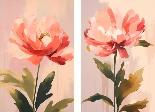 Poster Pivoines pastel sur de longues tiges dans des tons rose chaud Nr d01093