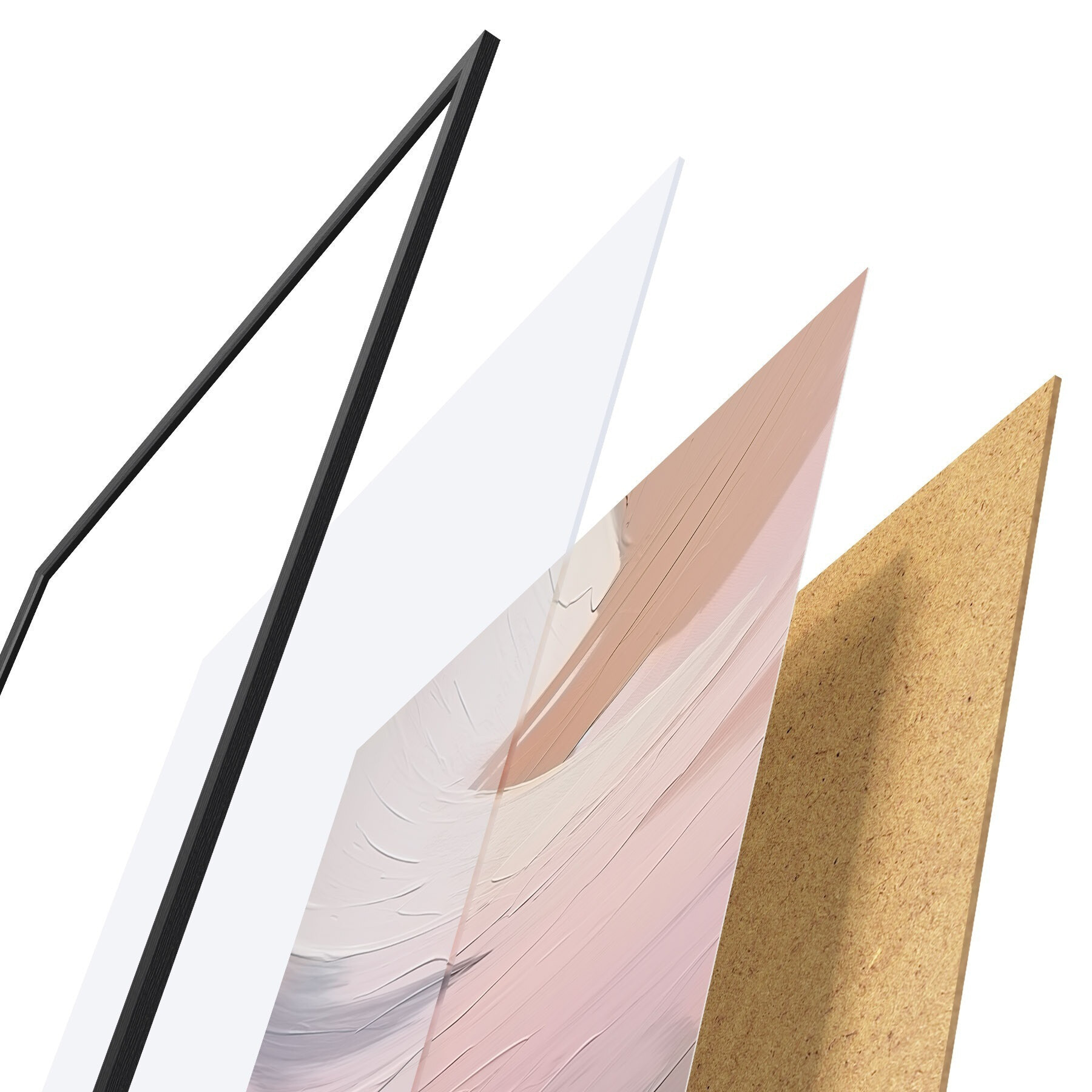 L’affiche encadrée est composée d’un cadre, d’un plexiglas, d’une image imprimée et d’un support en aggloméré. Elle est prête à être accrochée au mur grâce aux fixations situées à l’arrière.