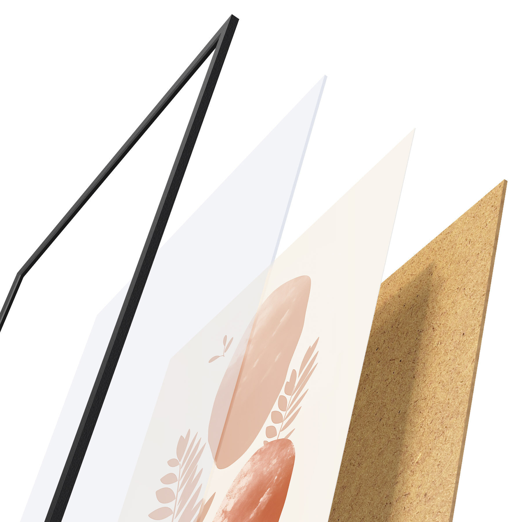 L’affiche encadrée est composée d’un cadre, d’un plexiglas, d’une image imprimée et d’un support en aggloméré. Elle est prête à être accrochée au mur grâce aux fixations situées à l’arrière.