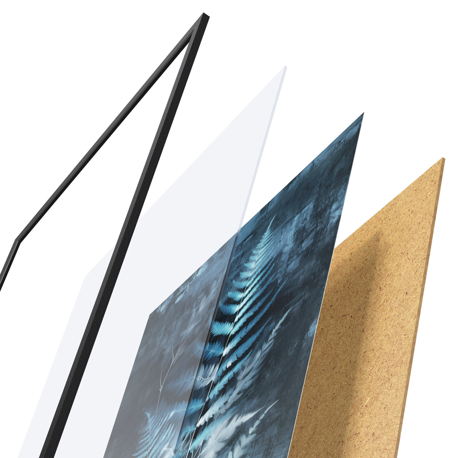 Poster Fougères bleues et plantes sur un fond sombre et texturé, avec un accent sur les détails complexes, effet rayons X. Nr d01121