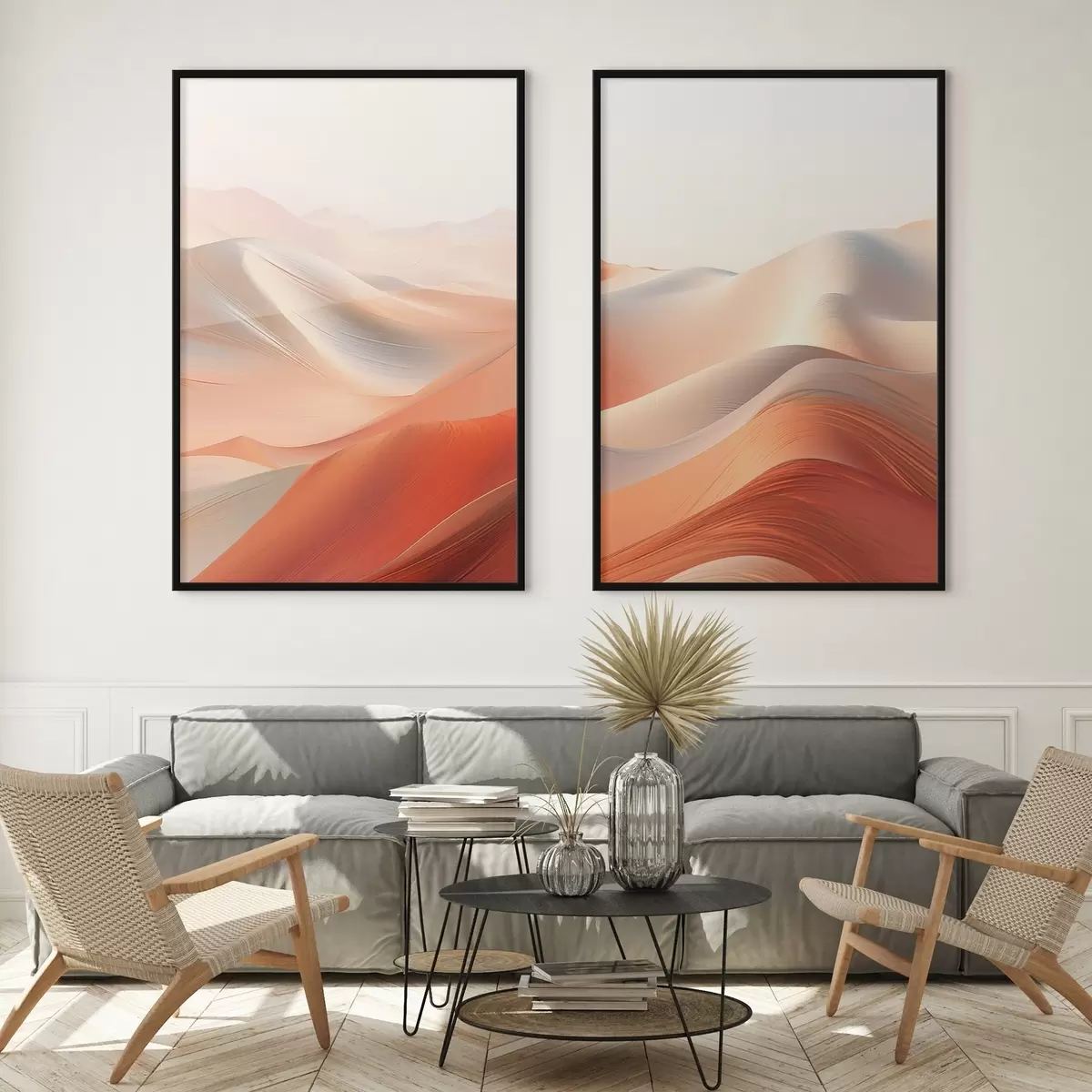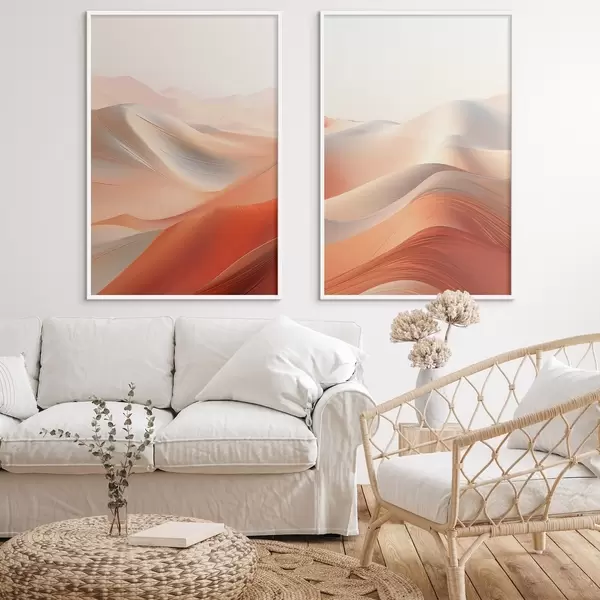 Poster Paysage désertique abstrait avec des dunes de sable ondulantes dans des tons chauds orange et blanc Nr d01123