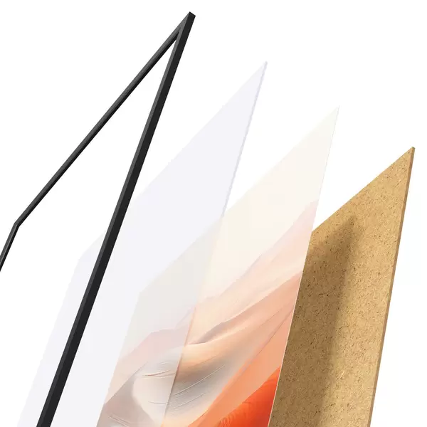L’affiche encadrée est composée d’un cadre, d’un plexiglas, d’une image imprimée et d’un support en aggloméré. Elle est prête à être accrochée au mur grâce aux fixations situées à l’arrière.