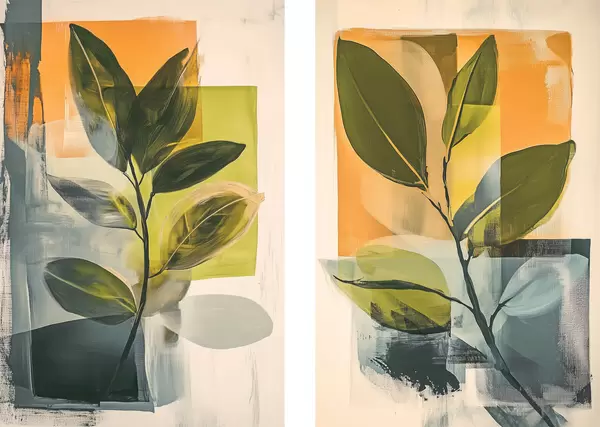 Poster Branches avec feuilles sur fond abstrait Nr d01132