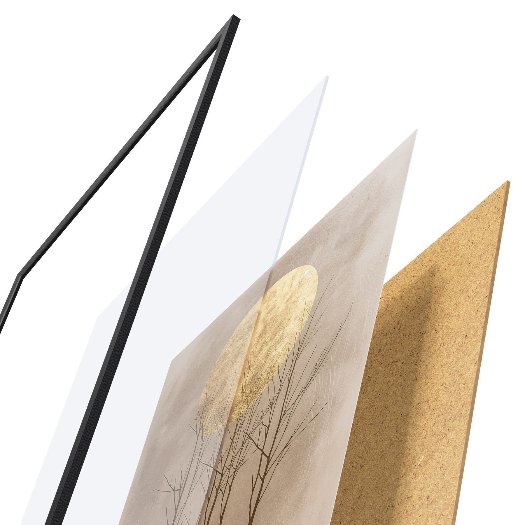 L’affiche encadrée est composée d’un cadre, d’un plexiglas, d’une image imprimée et d’un support en aggloméré. Elle est prête à être accrochée au mur grâce aux fixations situées à l’arrière.
