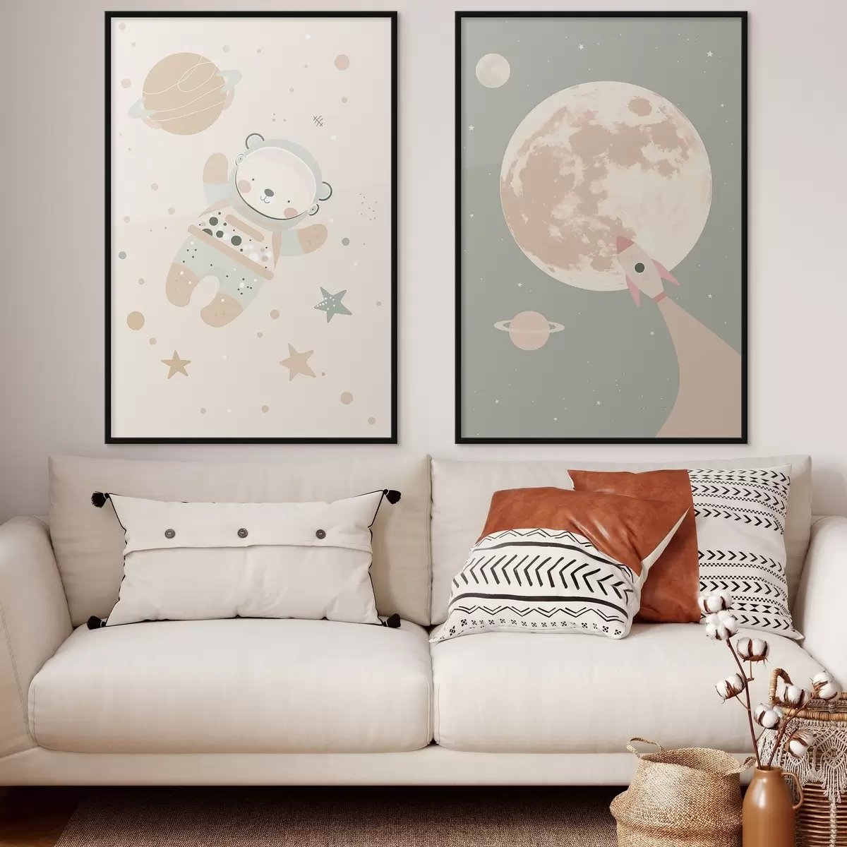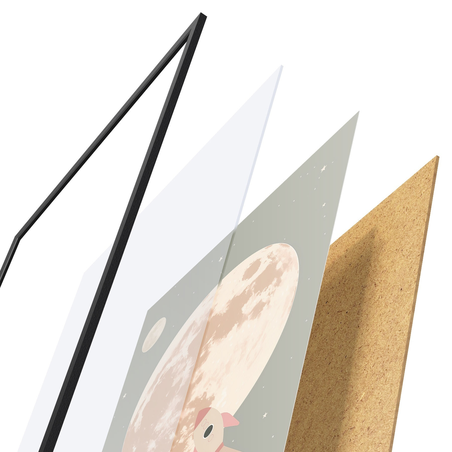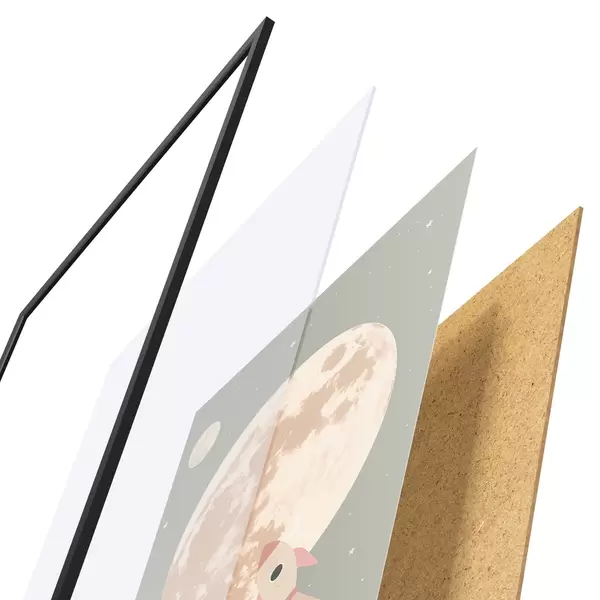 L’affiche encadrée est composée d’un cadre, d’un plexiglas, d’une image imprimée et d’un support en aggloméré. Elle est prête à être accrochée au mur grâce aux fixations situées à l’arrière.