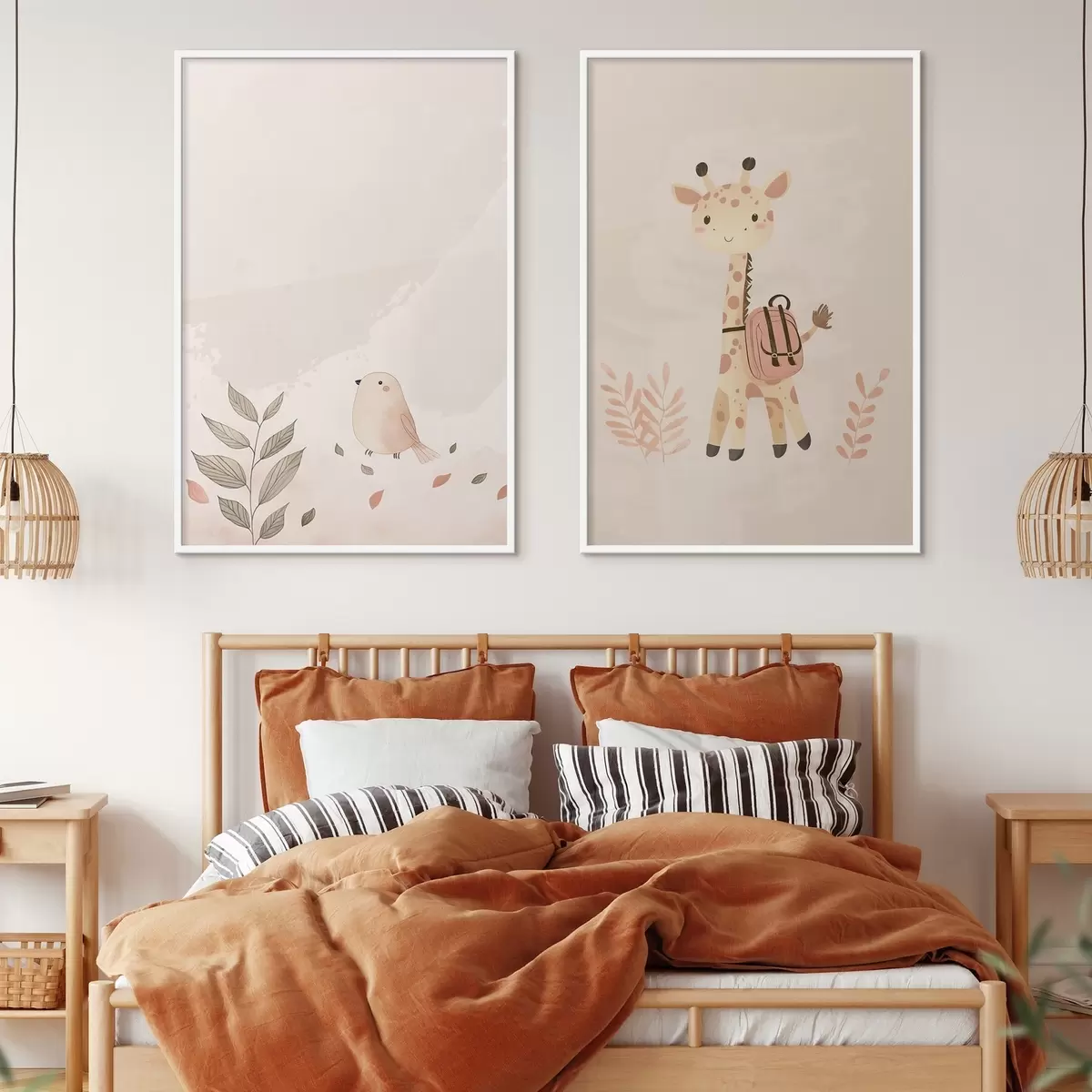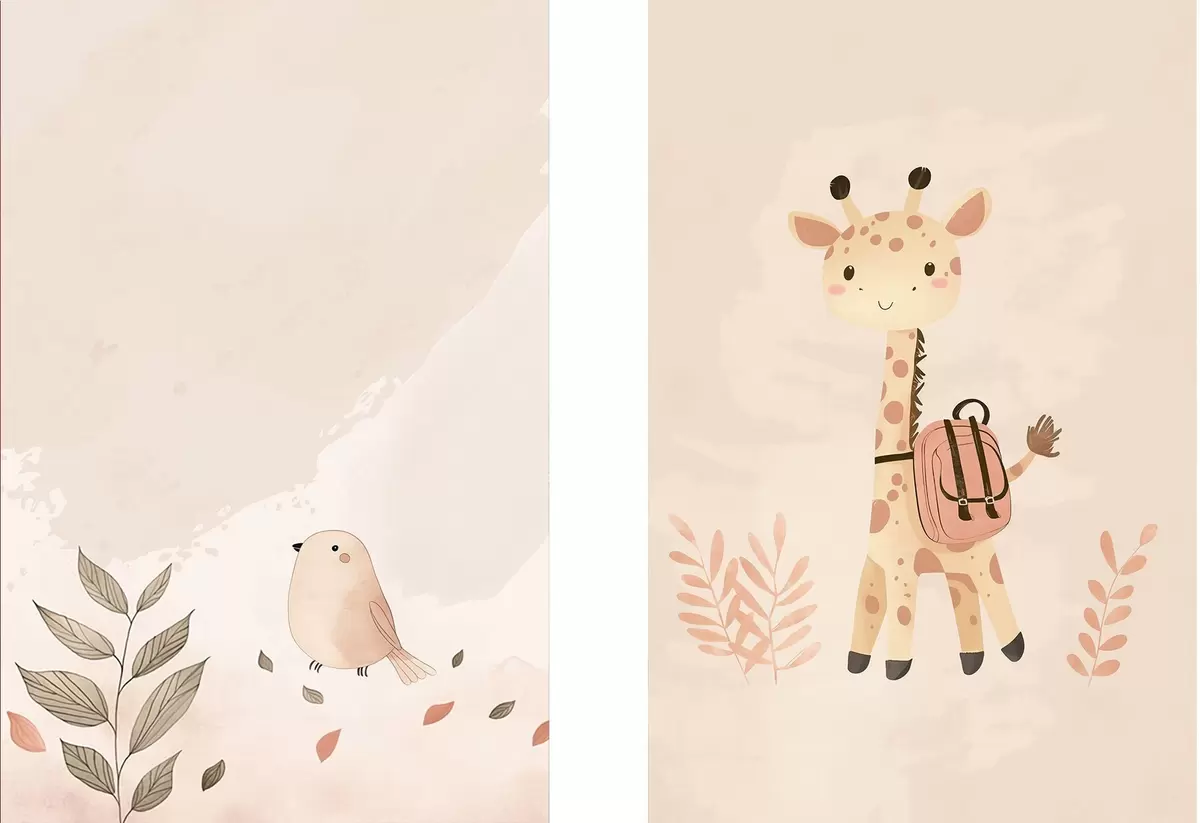 Poster Girafe et oiseau d01148