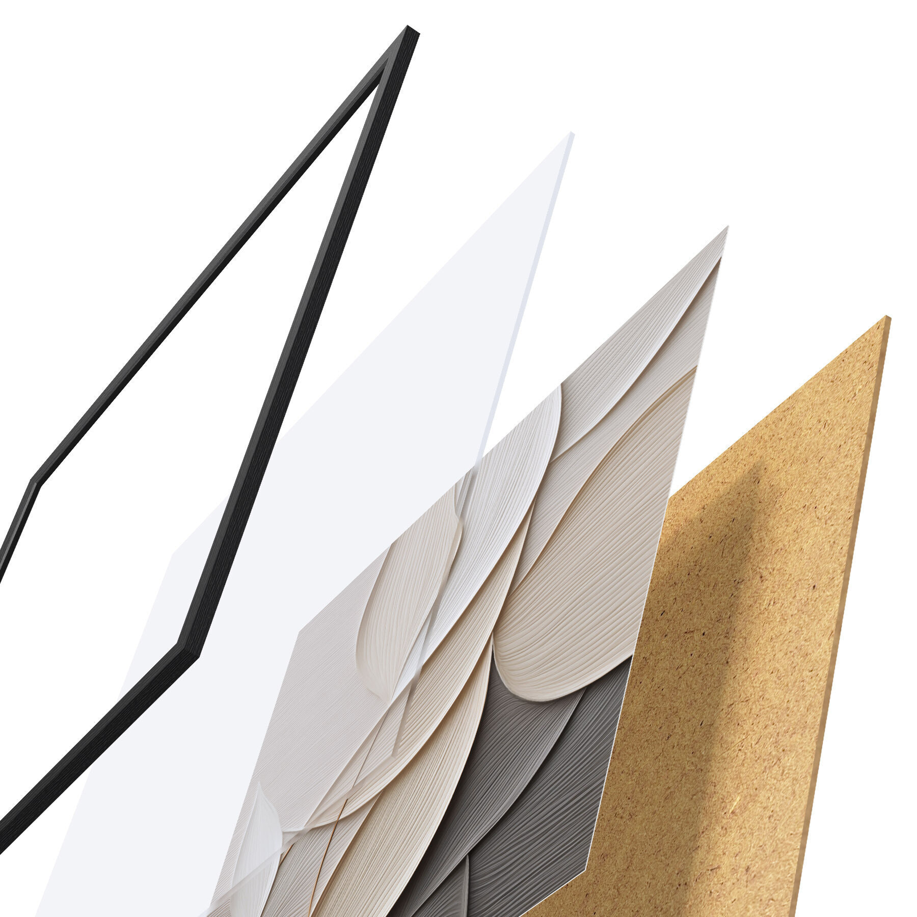 L’affiche encadrée est composée d’un cadre, d’un plexiglas, d’une image imprimée et d’un support en aggloméré. Elle est prête à être accrochée au mur grâce aux fixations situées à l’arrière.