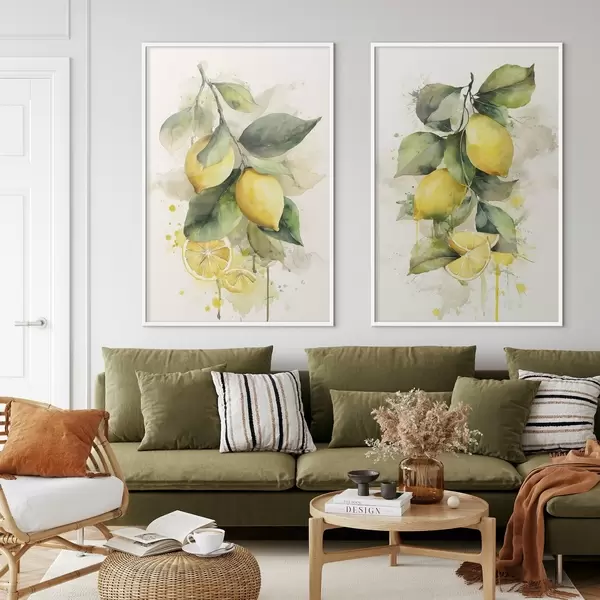 Poster branche de style aquarelle avec des citrons Nr d01172