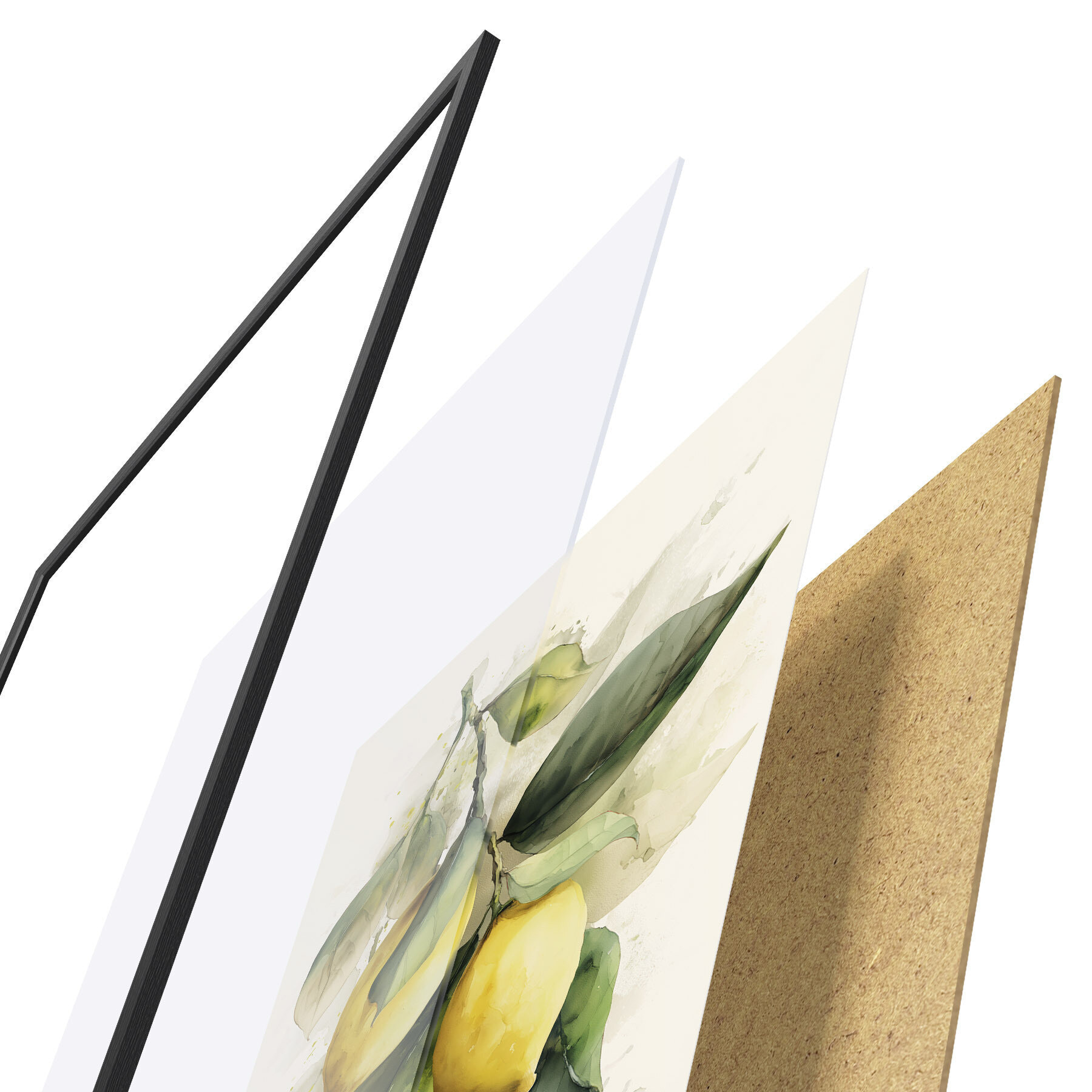 L’affiche encadrée est composée d’un cadre, d’un plexiglas, d’une image imprimée et d’un support en aggloméré. Elle est prête à être accrochée au mur grâce aux fixations situées à l’arrière.