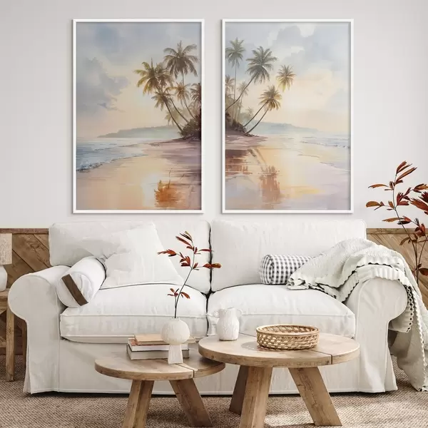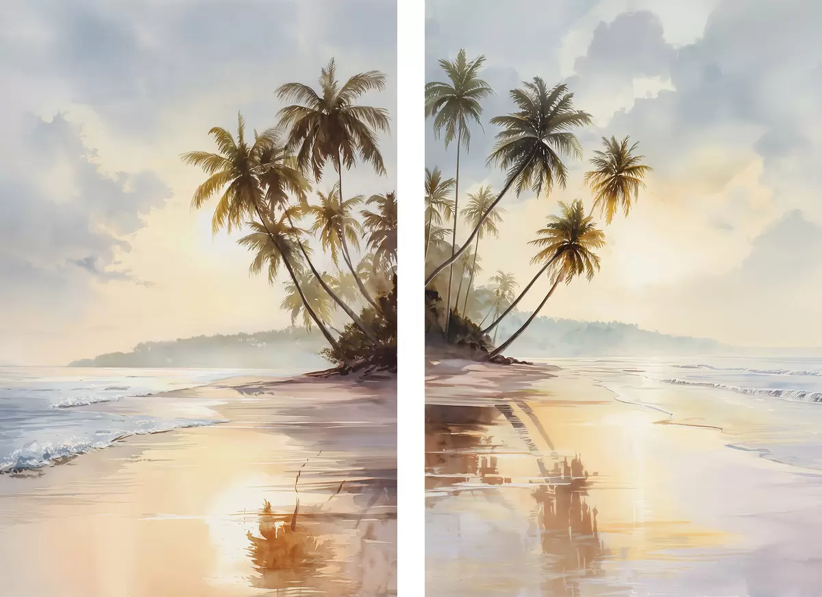 Poster plage au coucher du soleil sur une île, style aquarelle Nr d01177