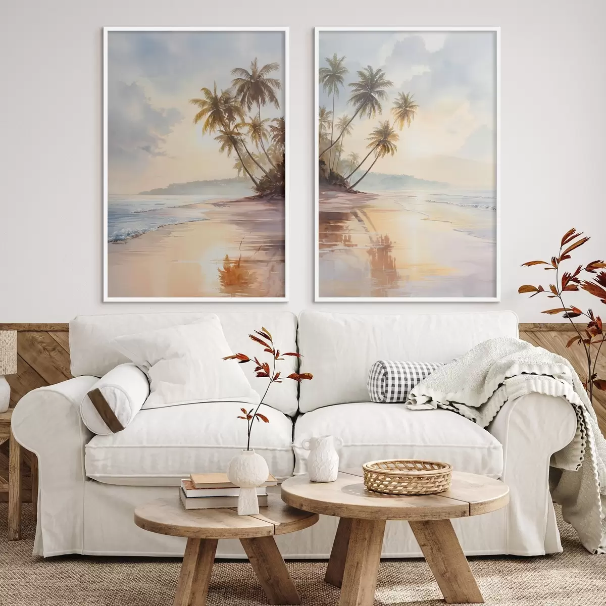 Poster plage au coucher du soleil sur une île, style aquarelle d01177