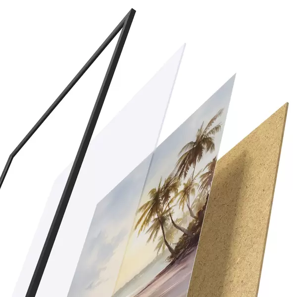L’affiche encadrée est composée d’un cadre, d’un plexiglas, d’une image imprimée et d’un support en aggloméré. Elle est prête à être accrochée au mur grâce aux fixations situées à l’arrière.