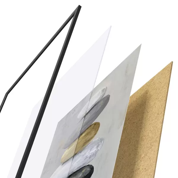 L’affiche encadrée est composée d’un cadre, d’un plexiglas, d’une image imprimée et d’un support en aggloméré. Elle est prête à être accrochée au mur grâce aux fixations situées à l’arrière.