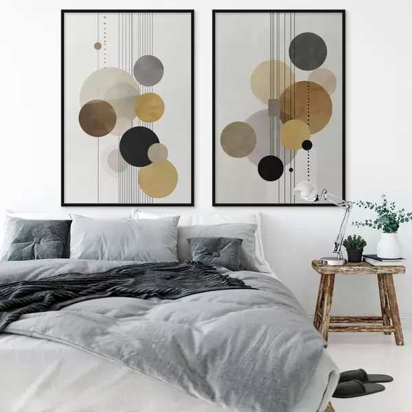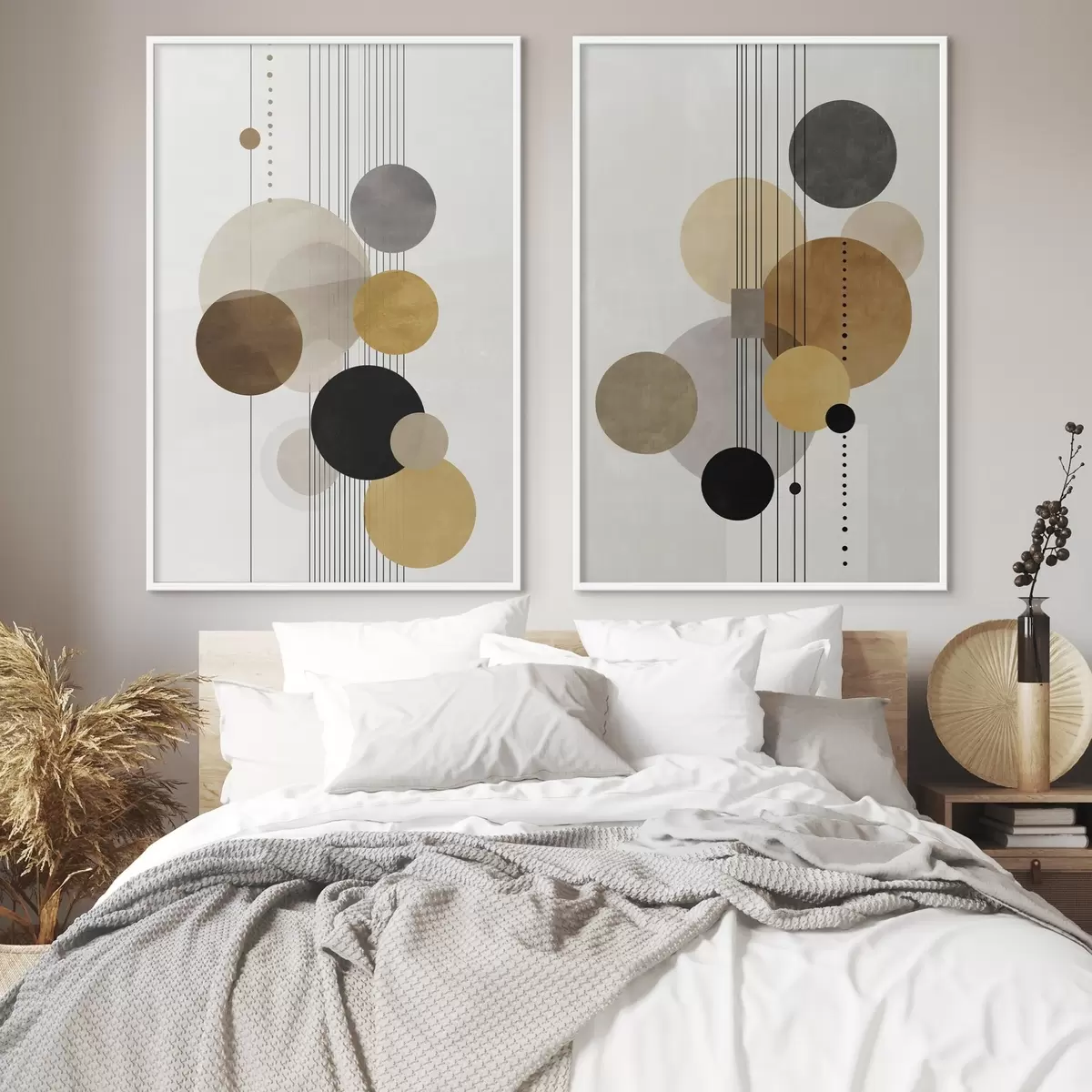 Poster abstraction avec des cercles et des lignes dans des couleurs chaudes d01182