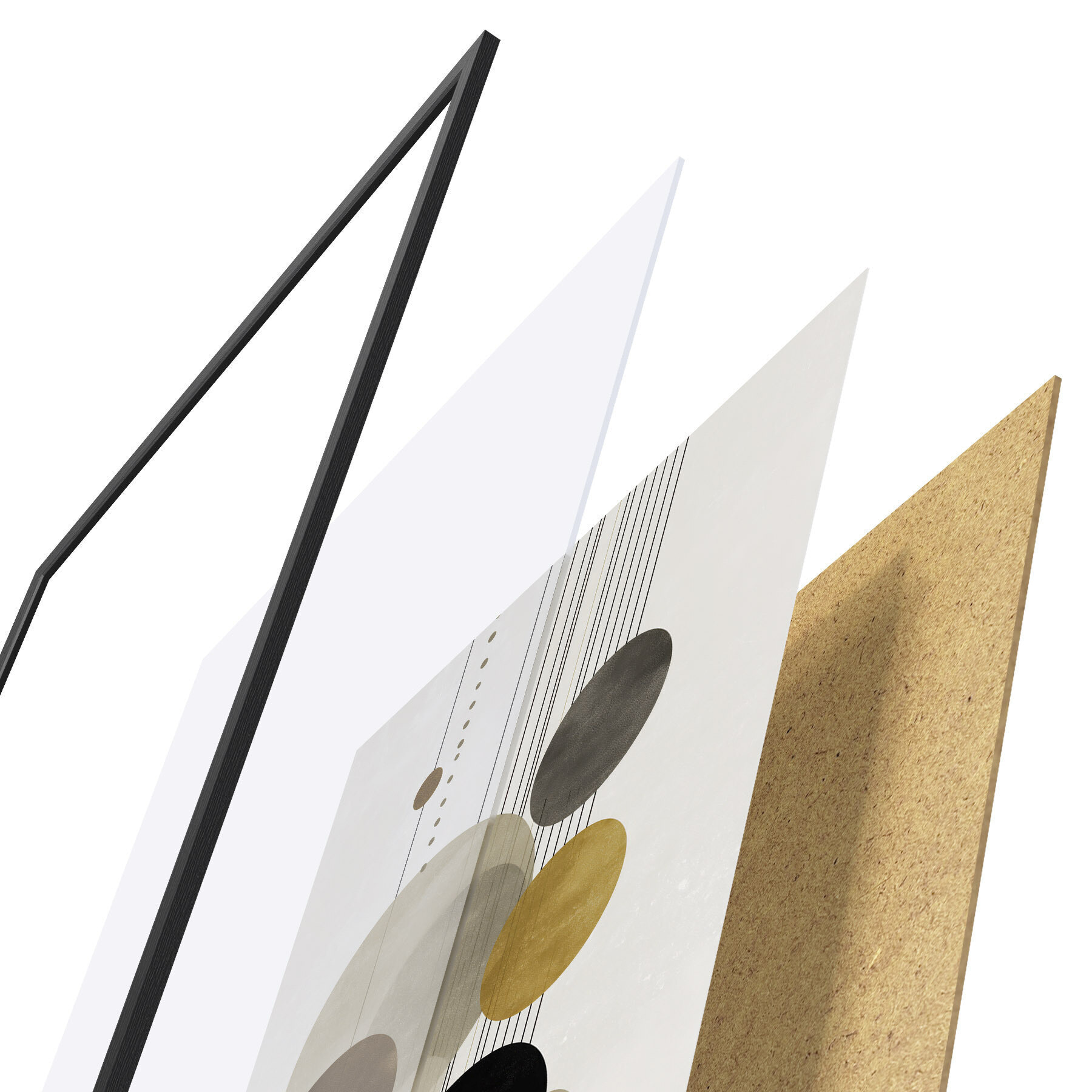 L’affiche encadrée est composée d’un cadre, d’un plexiglas, d’une image imprimée et d’un support en aggloméré. Elle est prête à être accrochée au mur grâce aux fixations situées à l’arrière.