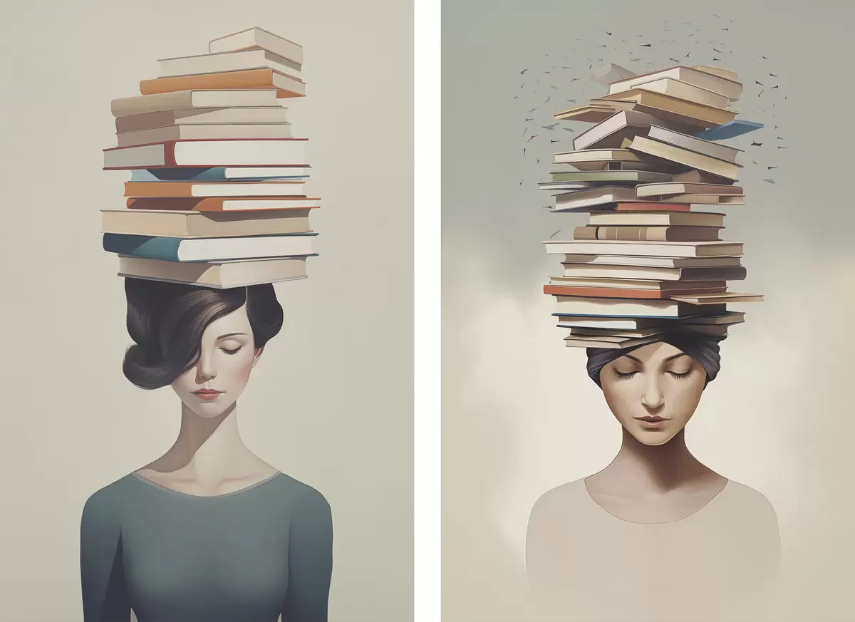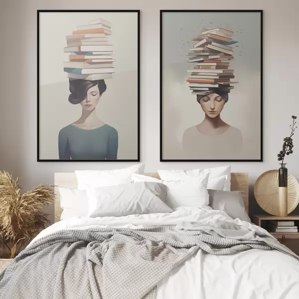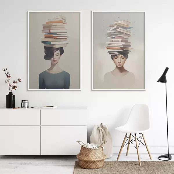 Poster Portrait d'une jeune fille avec des livres d01184