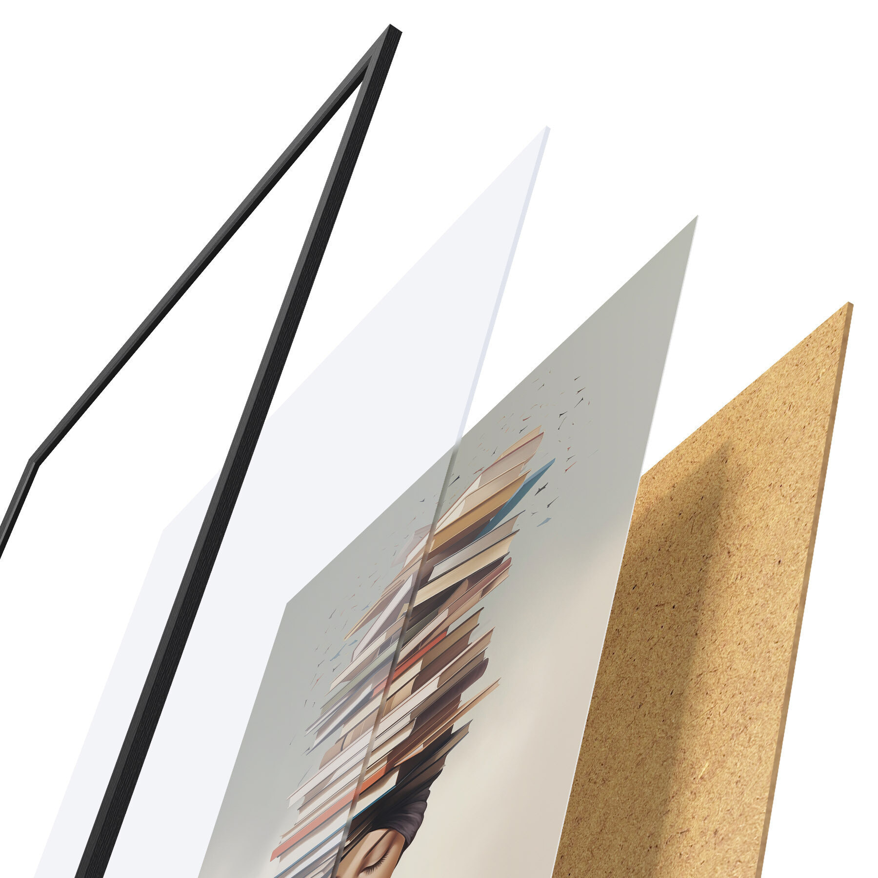 L’affiche encadrée est composée d’un cadre, d’un plexiglas, d’une image imprimée et d’un support en aggloméré. Elle est prête à être accrochée au mur grâce aux fixations situées à l’arrière.