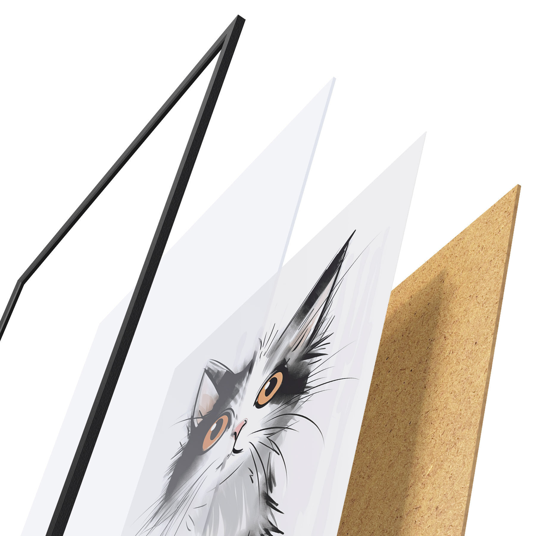 L’affiche encadrée est composée d’un cadre, d’un plexiglas, d’une image imprimée et d’un support en aggloméré. Elle est prête à être accrochée au mur grâce aux fixations situées à l’arrière.