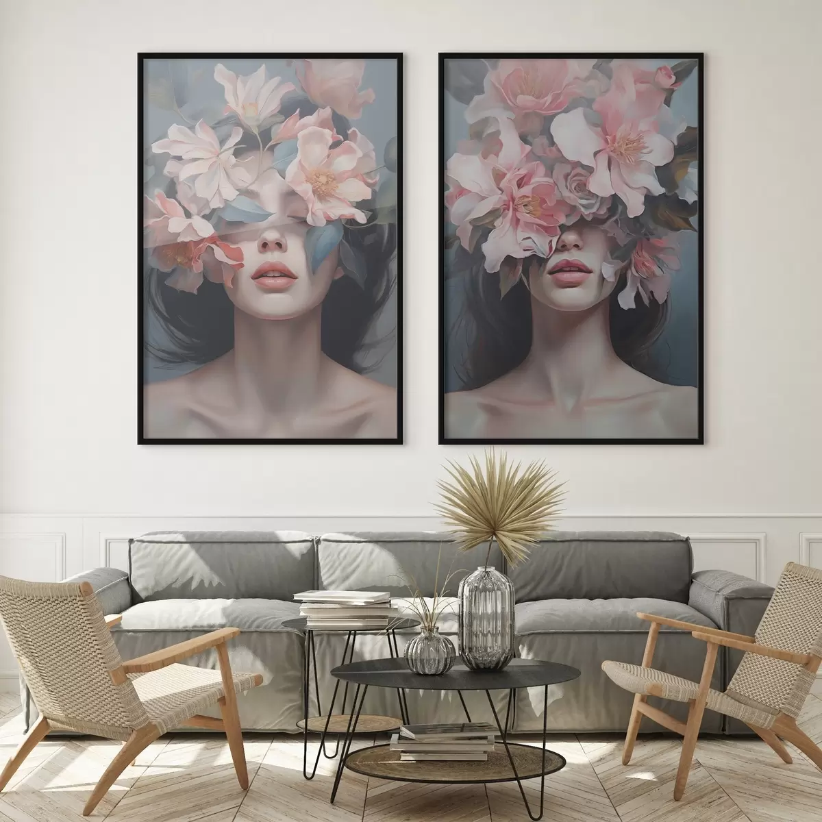 Poster Portrait féminin abstrait avec des fleurs d01221
