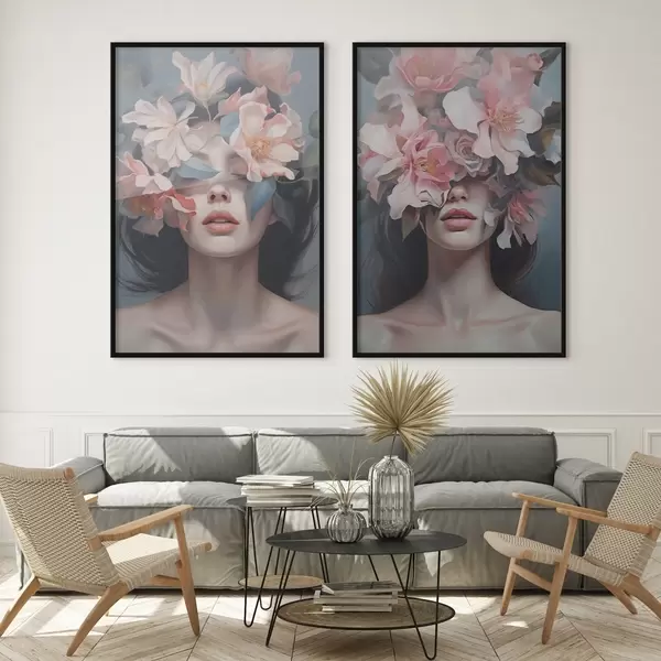 Poster Portrait féminin abstrait avec des fleurs Nr d01221