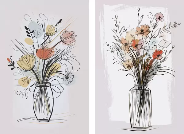 Poster Fleurs dans un vase imitation d'un dessin Nr d01224