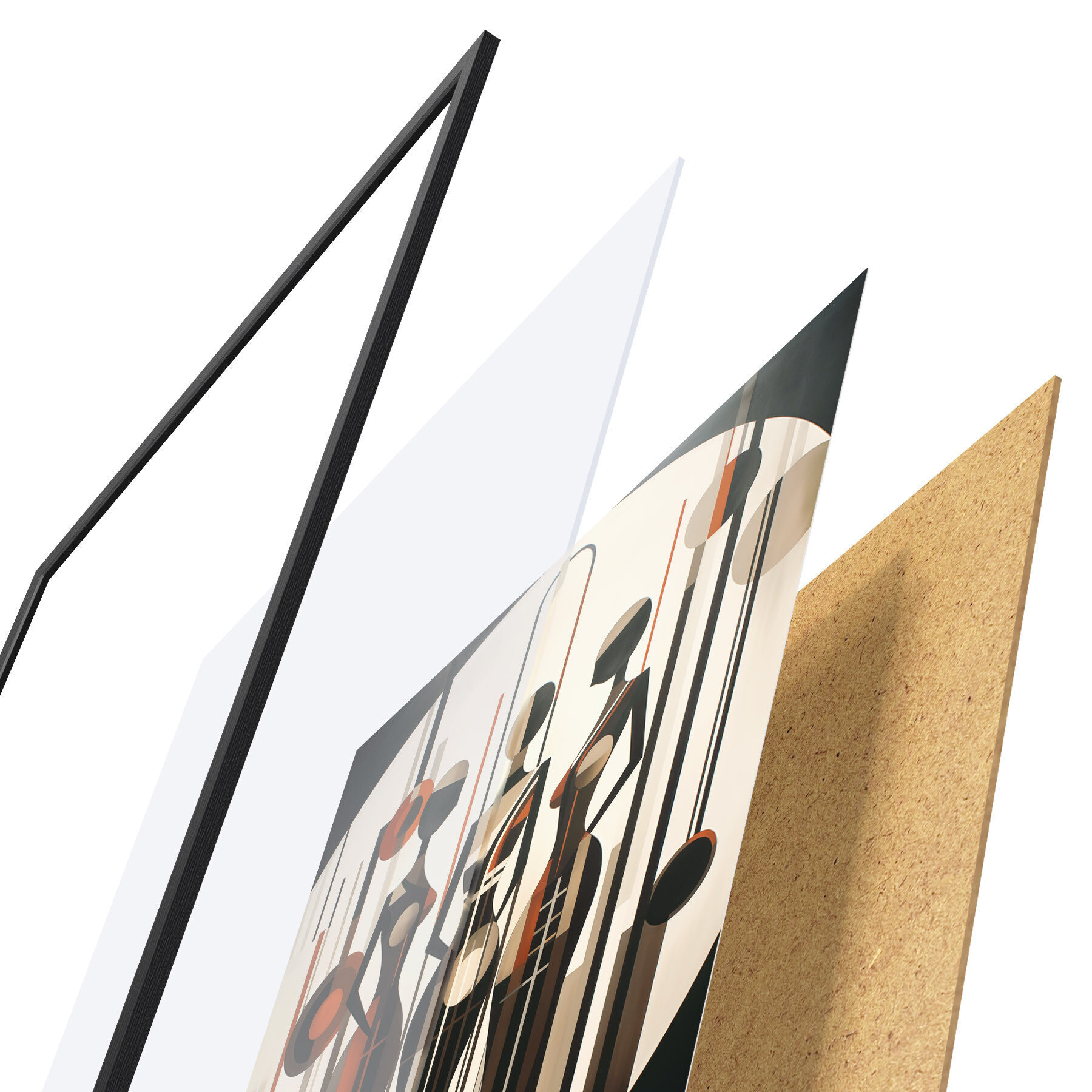 L’affiche encadrée est composée d’un cadre, d’un plexiglas, d’une image imprimée et d’un support en aggloméré. Elle est prête à être accrochée au mur grâce aux fixations situées à l’arrière.