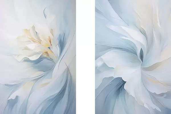 Poster Résumé : pétales délicats et translucides tourbillonnant vers l'intérieur, avec un éclairage doux et une texture picturale. d01244