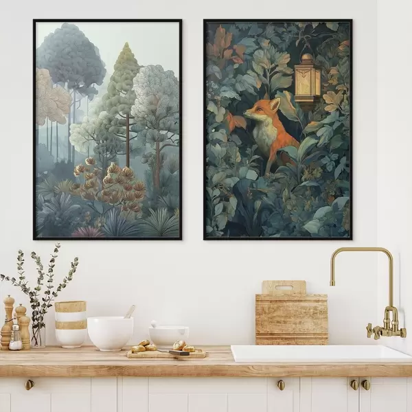 Poster Un renard mignon dans une forêt enchantée Nr d01248