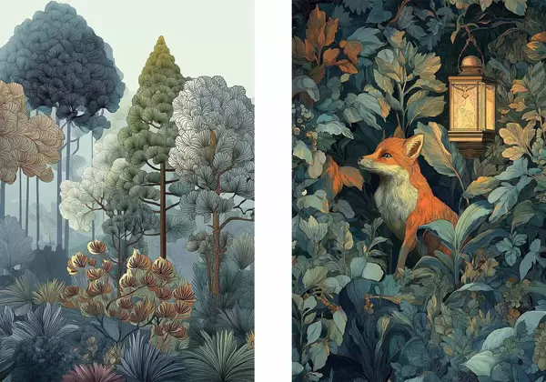 Poster Un renard mignon dans une forêt enchantée d01248