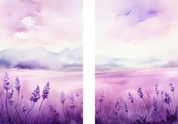 Poster Champ de lavande, imitation aquarelle Nr d01249