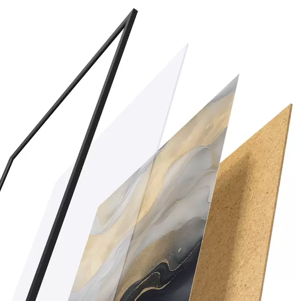 L’affiche encadrée est composée d’un cadre, d’un plexiglas, d’une image imprimée et d’un support en aggloméré. Elle est prête à être accrochée au mur grâce aux fixations situées à l’arrière.