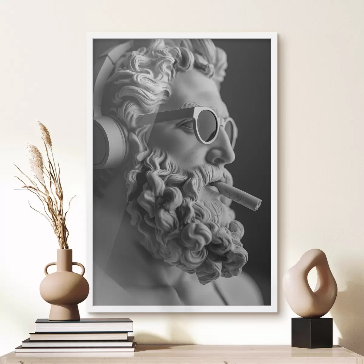 Poster sculpture grecque ancienne de Zeus en noir et blanc dans un style moderne f26122