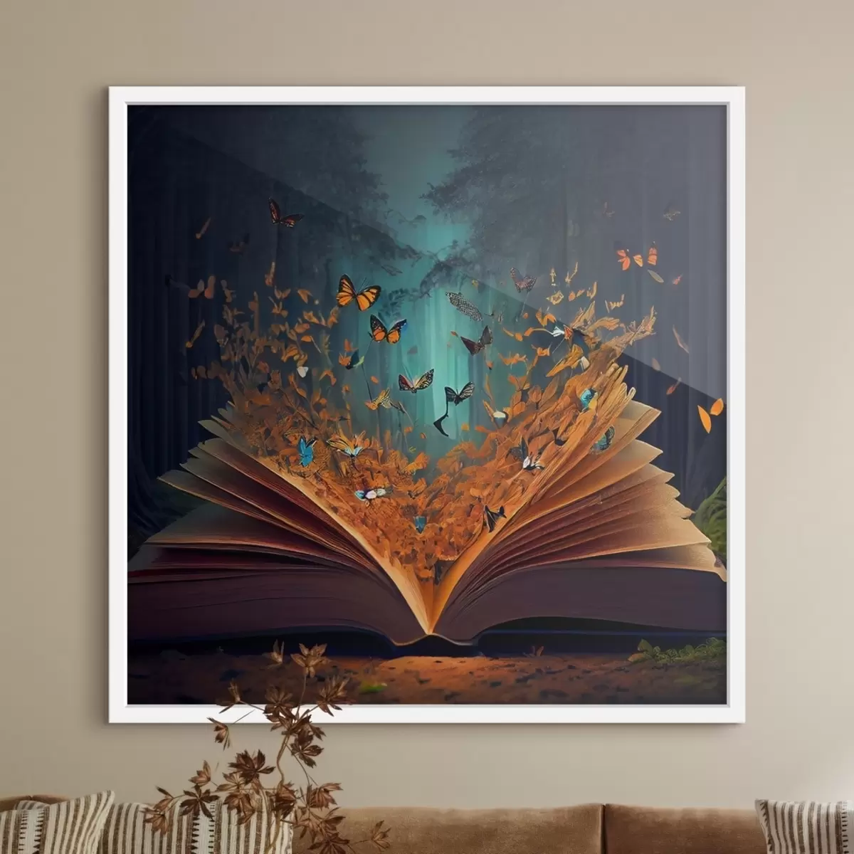 Poster Un livre de contes de fées avec des papillons dans la forêt Nr f33915