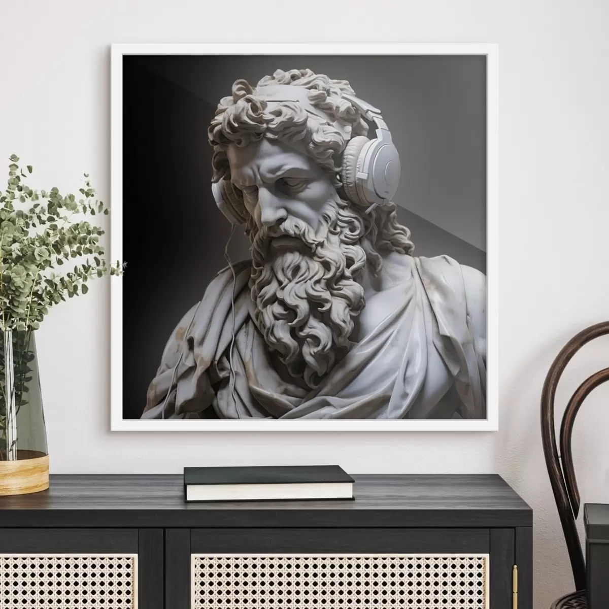 L’affiche encadrée est composée d’un cadre, d’un plexiglas, d’une image imprimée et d’un support en aggloméré. Elle est prête à être accrochée au mur grâce aux fixations situées à l’arrière.