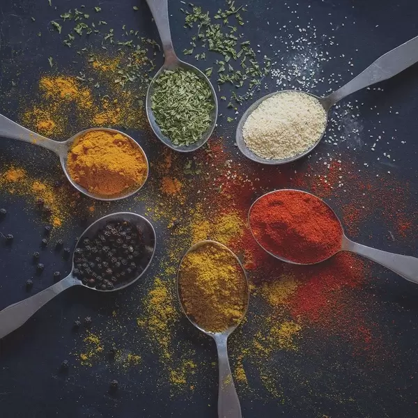 Poster Groupe de cuillères avec différentes épices f37046