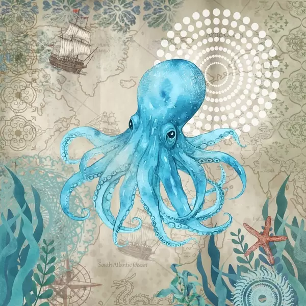 Poster Pieuvre bleue avec carte de l'océan Nr f37154