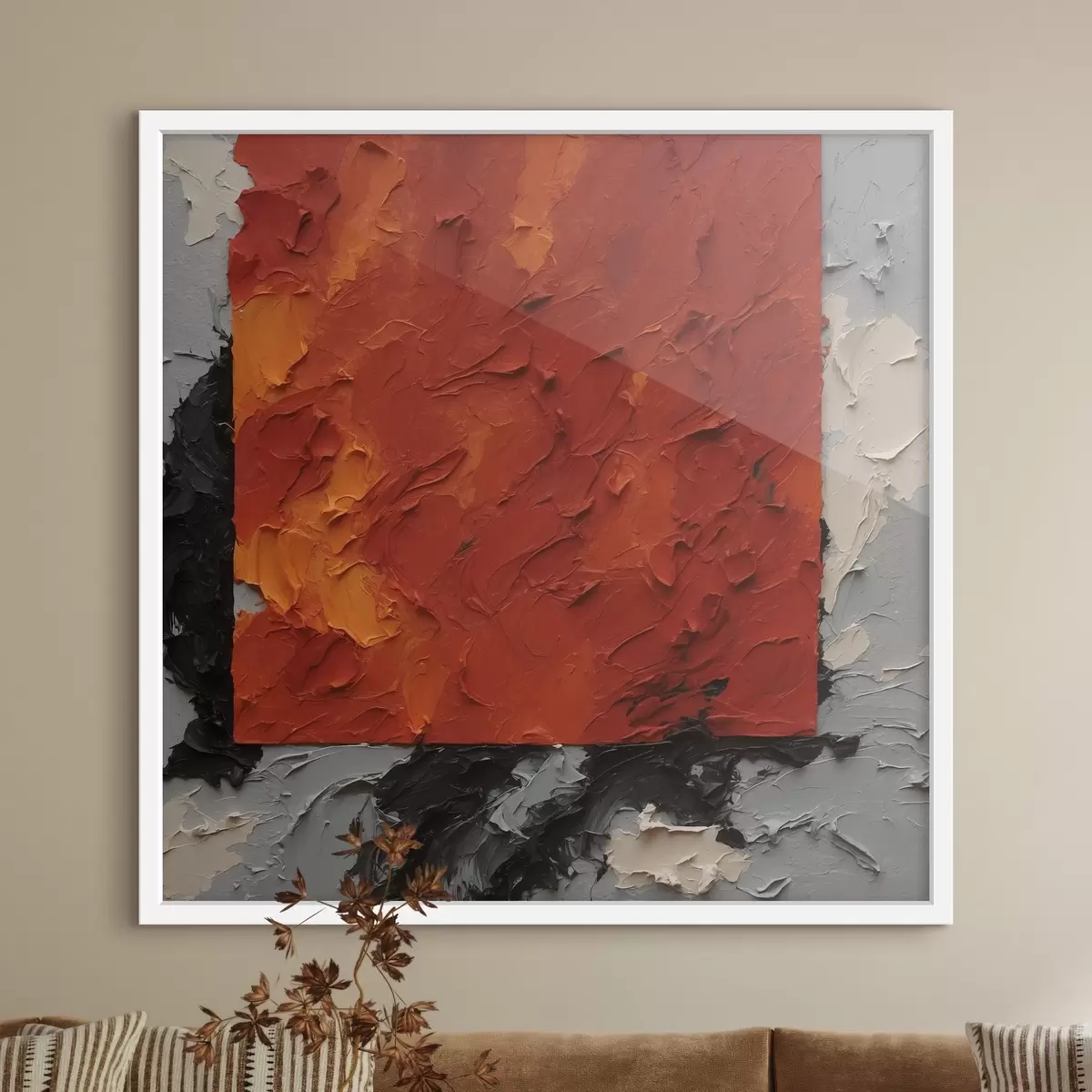 Poster Peinture à l'huile abstraite avec carré rouge f37167