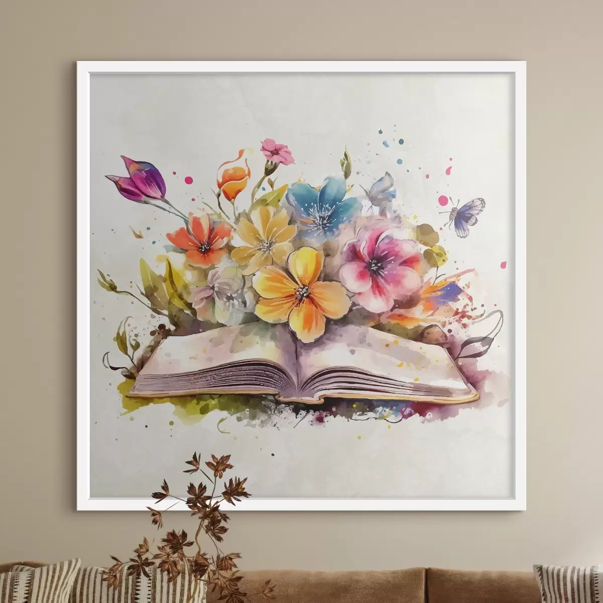 Poster livre ouvert avec des fleurs, peinture aquarelle Nr f38446