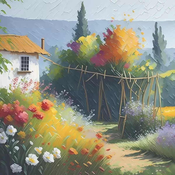 Poster Peinture d'une maison et de fleurs Nr f38489