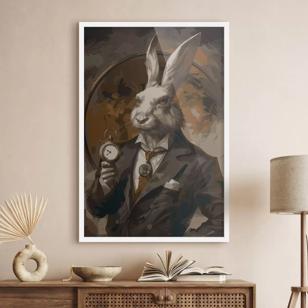 Poster Lièvre avec une montre de style vintage Nr f38507