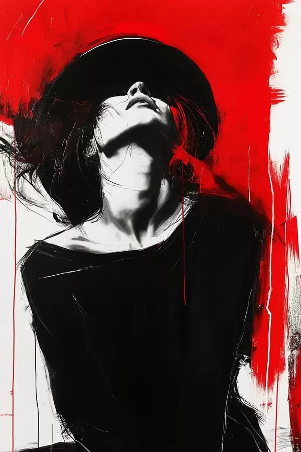 Poster Femme avec un chapeau noir sur fond rouge Nr f38561