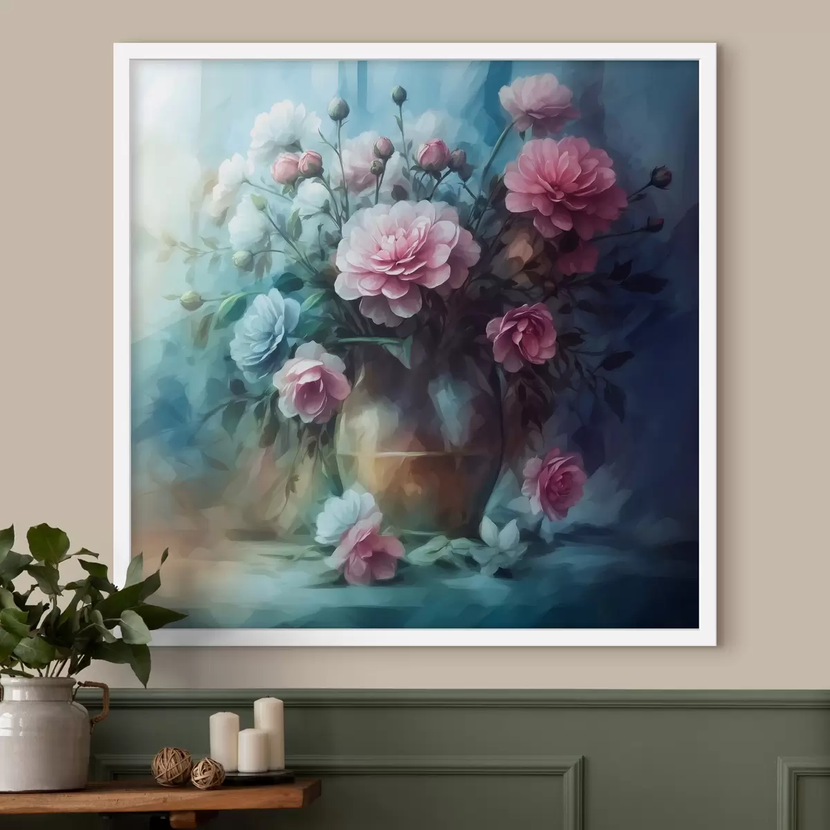 Poster Fleurs dans un vase sur fond bleu nuageux Nr f39164